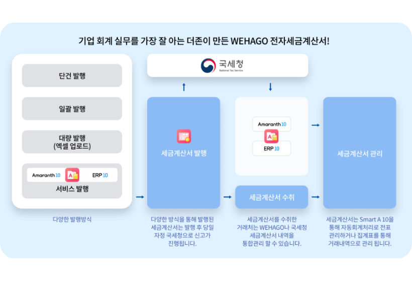 더존의 모든 ERP와 연동되어 편리한 전자 세금계산서 발행이 가능합니다.