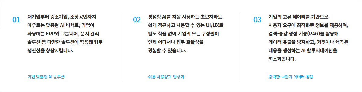 기업별 데이터를 AI가 학습해 각 기업에 최적화된 정보를 제공하며,