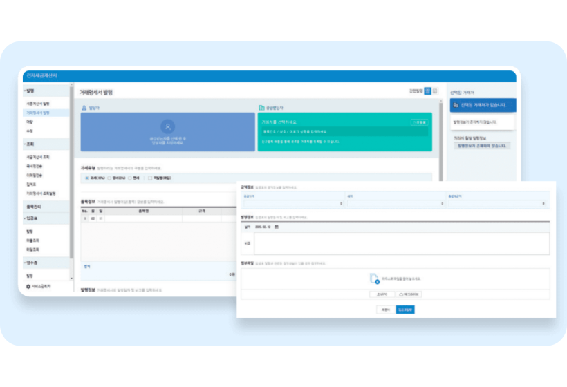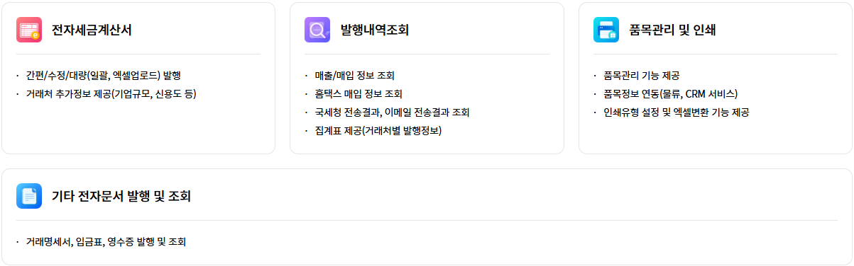 전자 거래명세서 발행, 전자 입금표 발행, 전자 영수증 발행 기능 제공