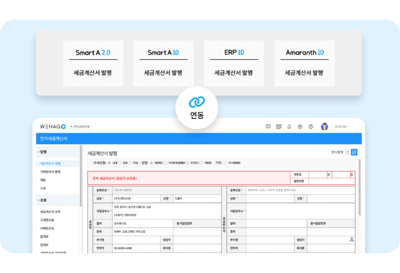 더존의 모든 ERP와 연동되어 편리한 전자 세금계산서 발행이 가능합니다.